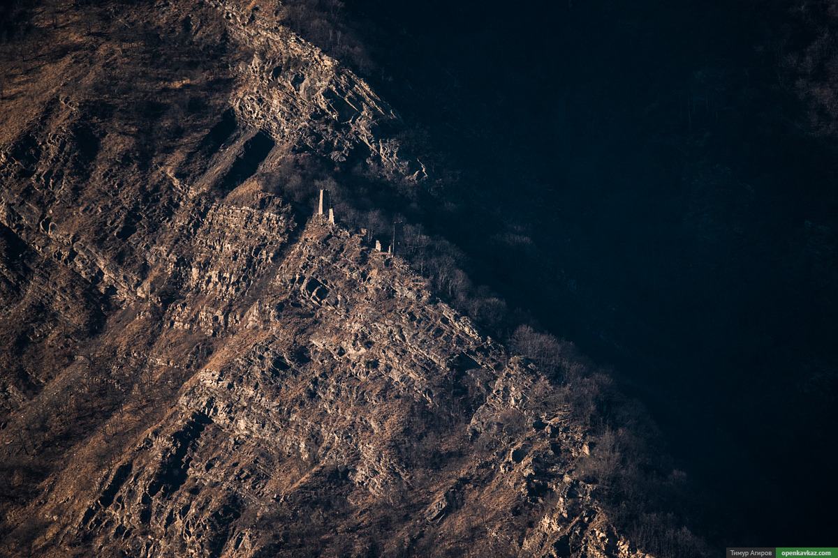 Под нами село Верхний Кокадой и комплекс башен на горе Бекхайла.