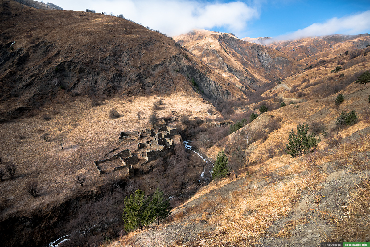 В соседнем ущелье видны развалины Горой.